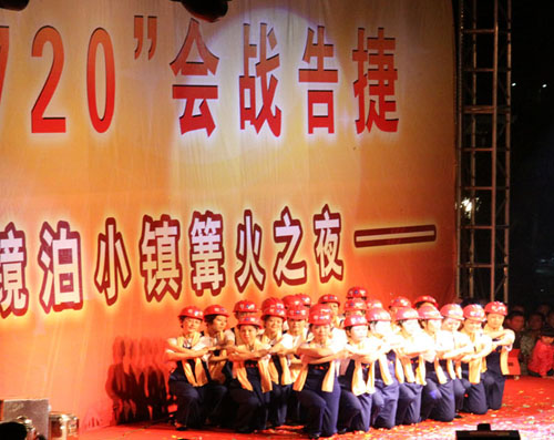 開業(yè)當(dāng)晚,我公司代表施工企業(yè),為“鏡泊小鎮(zhèn)篝火之夜”文藝匯演奉獻了節(jié)目——舞蹈《咱們工人有力量》。